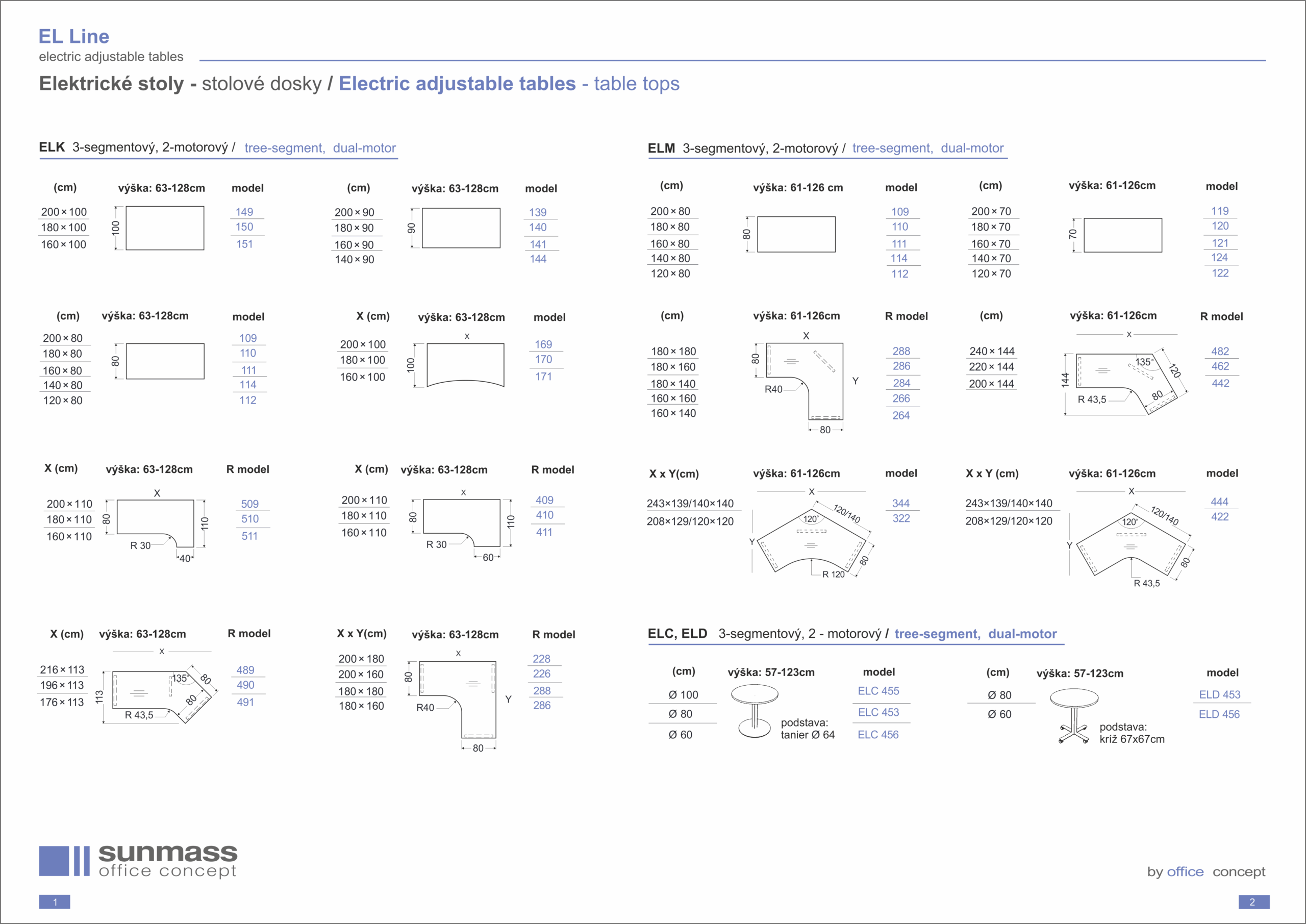 • ELK - trojsegmentová podnož, nastaviteľná výška 63 - 128 cm, dva motory